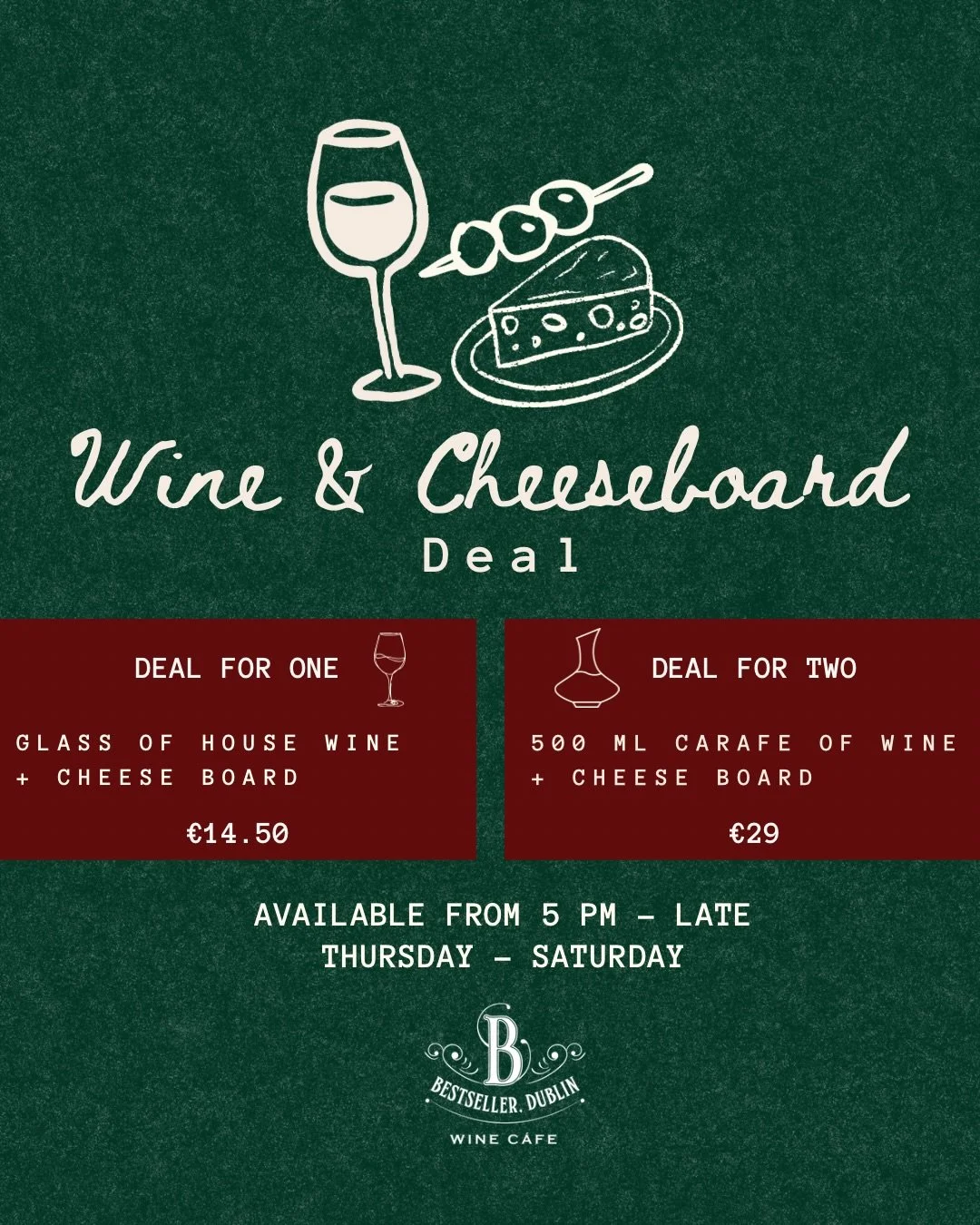 ✔ Wine-led atmosphere